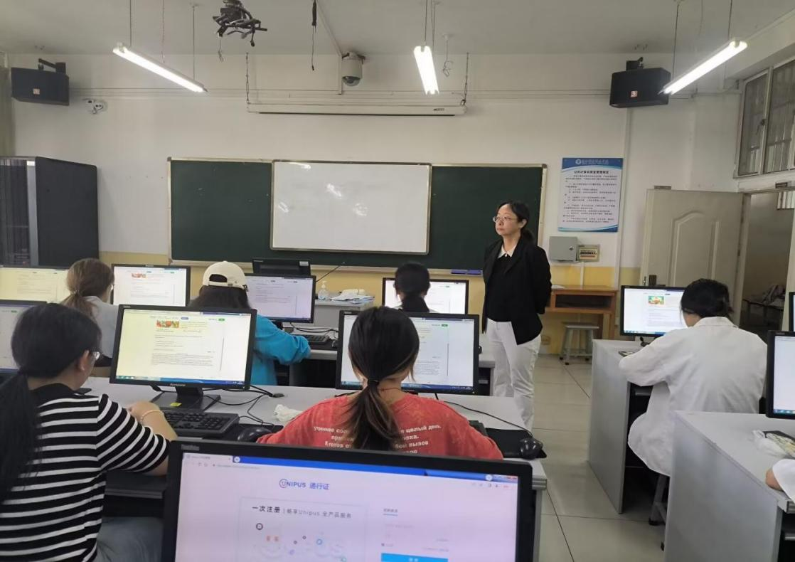 参赛学生有序签到、就座并登录考试系统,外国语学院老师及考务人员为参赛学生解决网络及系统问题,提醒选手有关注意事项,提供备用账号,为此项赛事的顺利举办保驾护航。