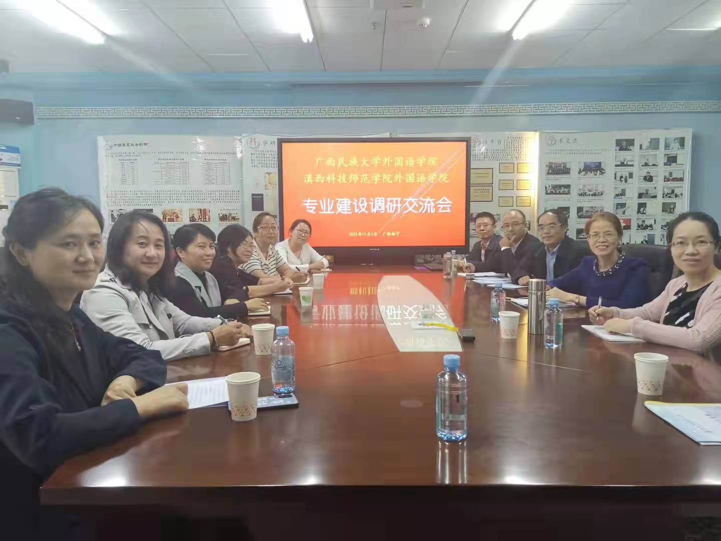 会议最后,我院还就毕业论文指导、大学生职业规划指导、专业能力竞赛等方面的问题,与广西民族大学外国语学院的领导和专家们进行深入探讨学习。